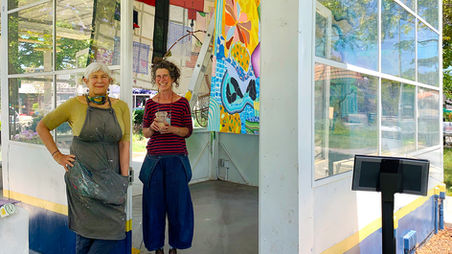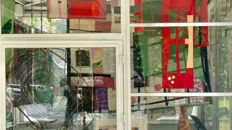 Wandering the City is a collaborative installation that draws from their shared interest in improvisational looking, engaging with the city around us as they wander through their neighborhoods. Activating the interior of the Adams Square Mini Park Gas Station, the artists seek to engage viewers in the act of seeing. Fiber art, woven textiles, painted papers, muslin and canvas, with layers of pattern and textures throughout, act as visual representations for what we see, feel and hear as we walk through our neighborhoods.