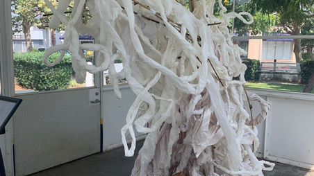 Another Life ” is an art installation uniquely created with recycled local fallen palm fronds, palm dried fruit branches and sycamore leaves. This project appeals to individuals from all walks of life, who enjoy visiting Adams Square Mini Park.